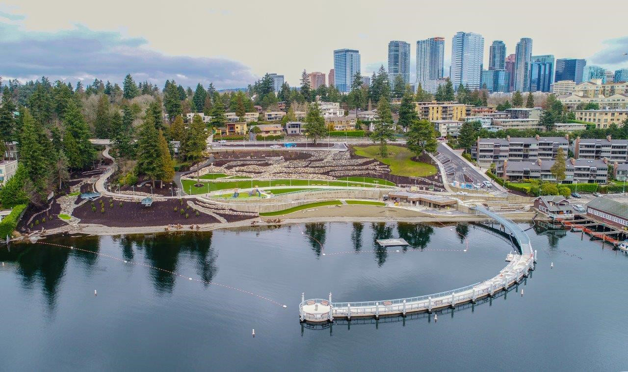 Walk, bike, or ride 1 mile down to the waterfront to take in the beautiful scenery of Lake Washington at Meydenbauer Bay Park (pictured below). Walk along the curved pedestrian pier, rent a kayak, or simply sit and watch the sailboats.