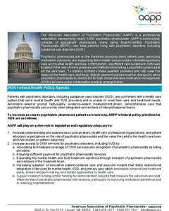 To increase access to psychiatric pharmacist patient care services, AAPP’s federal policy priorities for 2026 are as follows: