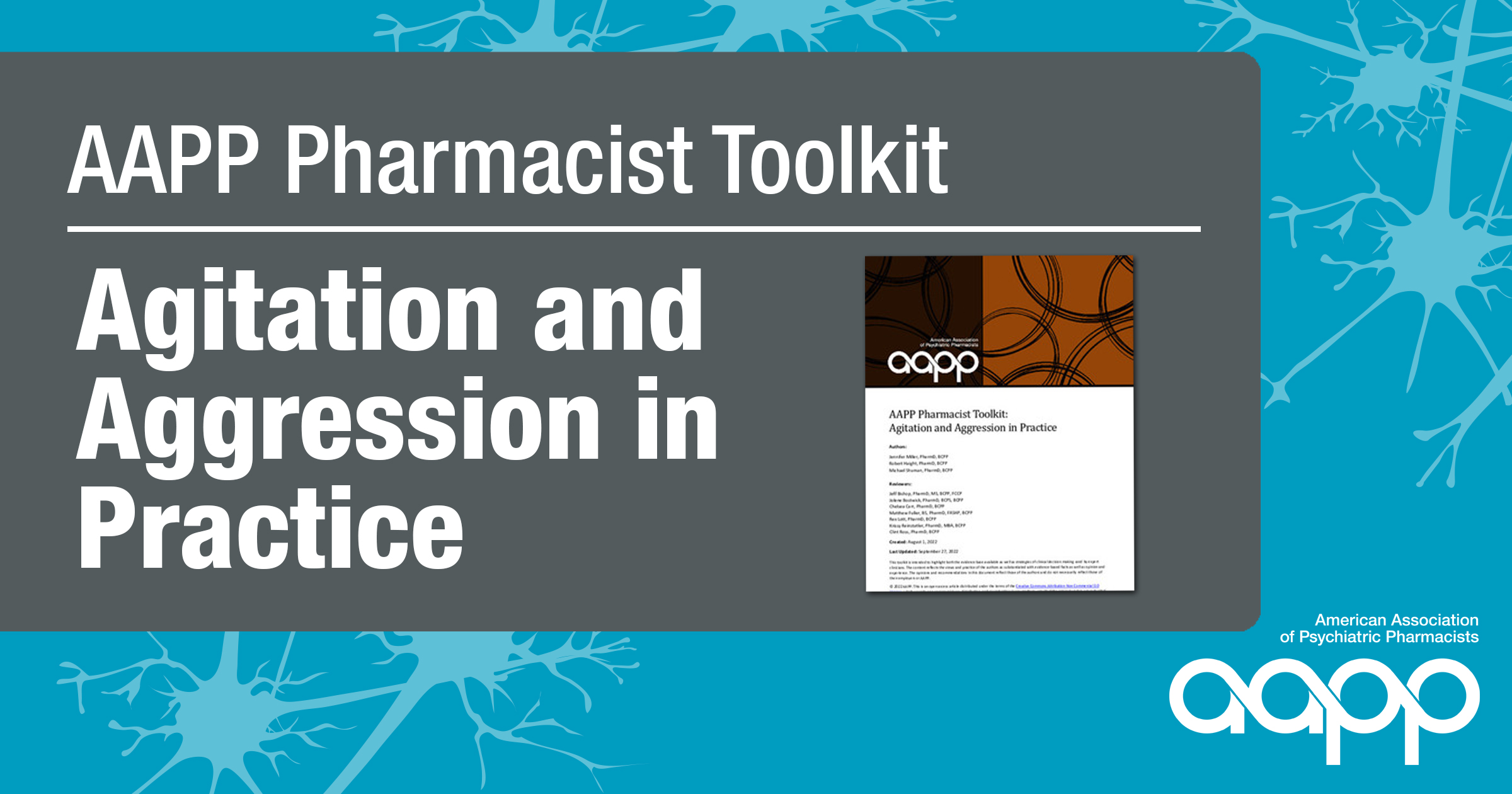 This toolkit provides a resource for recognizing, understanding, and managing episodes of agitation and forms of aggression encountered in clinical practice. Various assessment tools and nonpharmacologic and pharmacologic interventions are reviewed as a means to improve outcomes and safety.