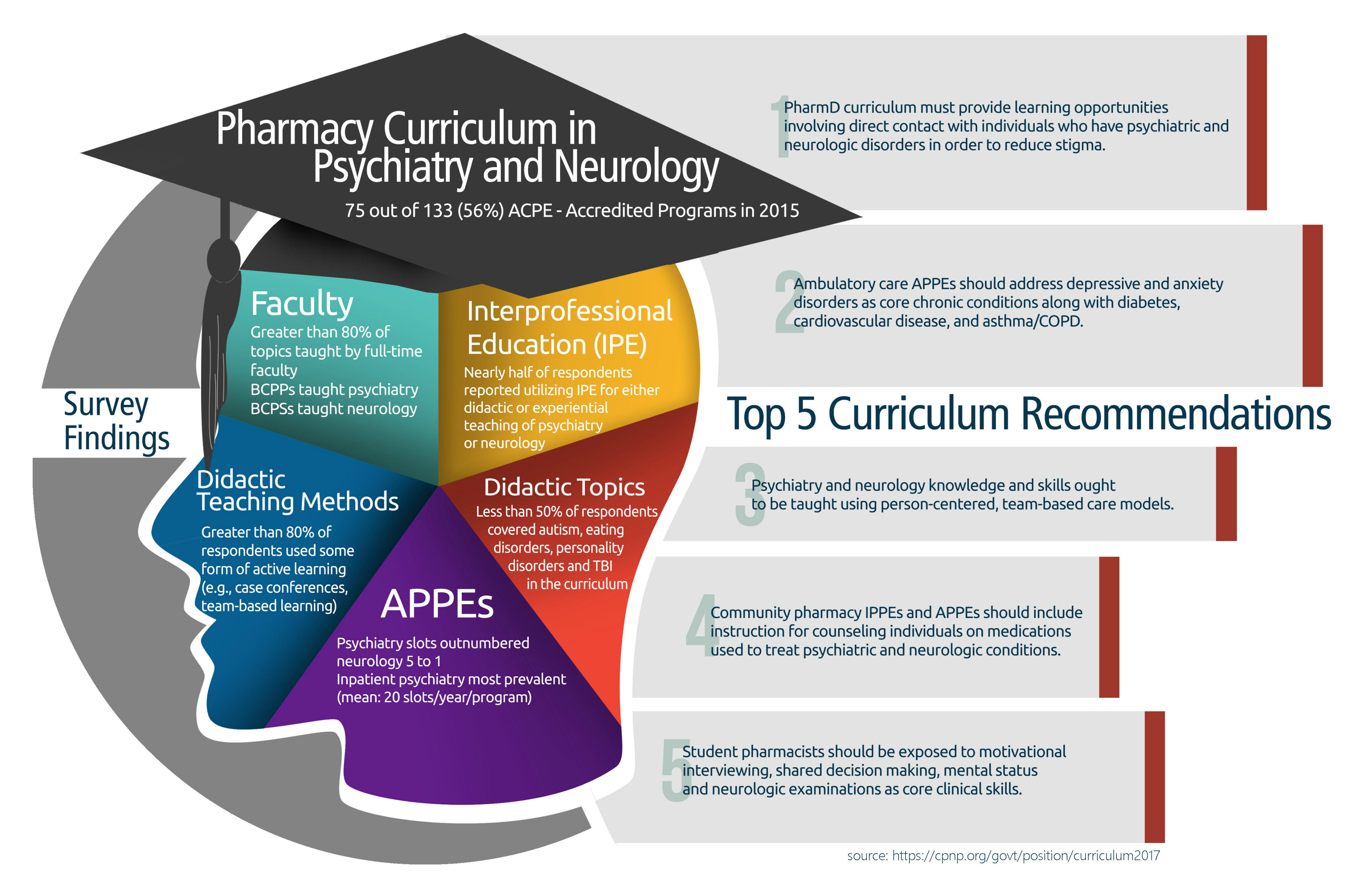 Patients with psychiatric and/or neurologic disorders make up a large percentage of the patients for whom pharmacists provide care in all types of settings. It is critical for pharmacy students to acquire the knowledge and skills necessary to both recognize and treat these disorders.